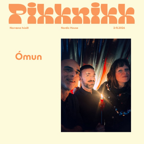 Within the quiet landscape from delicate acoustic textures, words appear, dissolve, and return, guiding listeners toward a narrative dimension where sound and story move as one. Each performance by Ómun is an open, improvised experience shaped by the moment, and you have to be there to find out how the interesting atmosphere surrounding the Pikknikk venue is going to influence the trio’s creative output this Sunday afternoon.