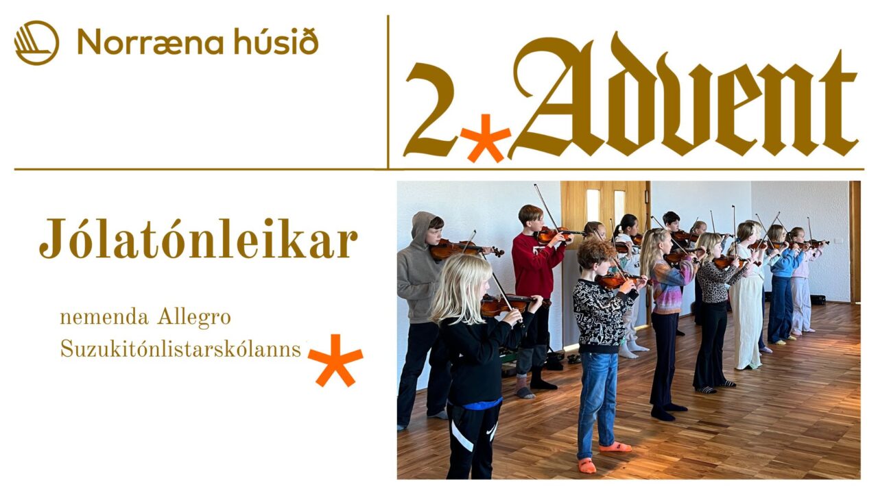 Nemendur úr Allegro Suzukitónlistarskólanum munu bæði spila jólalög fyrir gesti, meðal annars má heyra: jólin alls staðar, bráðum koma blessuð jólin, það á að gefa börnum brauð, klukknahljóm og margt fleira.